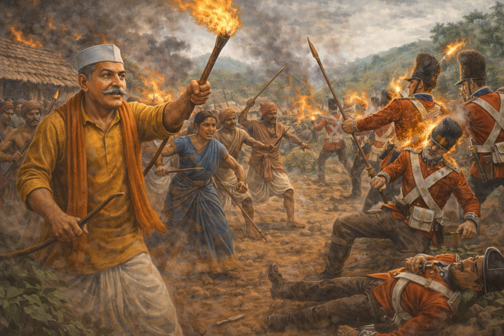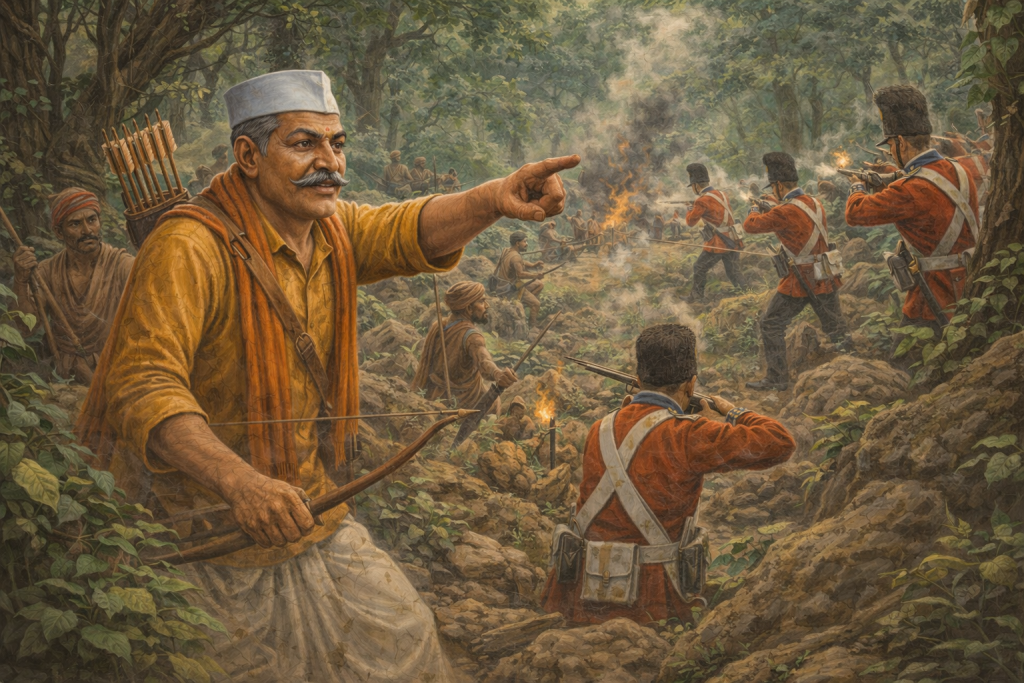 Facing a stronger and better-equipped colonial force, Marri Kamayya relied on strategic guerrilla tactics rooted in deep knowledge of forest terrain. The dense hills and wooded landscapes of Gond territory became natural allies, allowing swift movement, surprise actions, and protective concealment for tribal fighters.age.